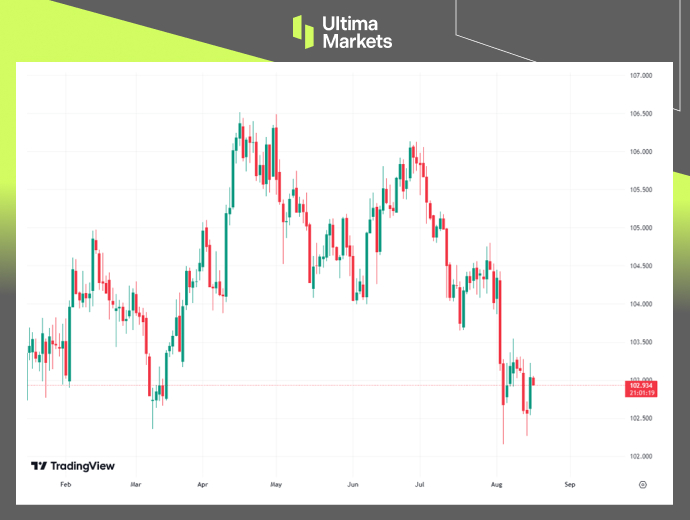 相比之下,上个月的零售销售激增1.0%,创下自2023年1月以来的最大增幅,而此前6月份的零售销售反而下滑0.2%。消费者通过寻找优惠的物品和选择低价替代品以减少支出。这些好于预期的数据使美元指数上涨了0.46%,收盘于103.04。