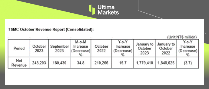 On November 10, Taiwan Semiconductor Manufacturing Company (TSM.US) announced that its October revenue was a record-breaking US$7.53 billion (NT$243.2 billion), representing a notable 34.8% increase from September and a 15.7% raise from the same period last year.