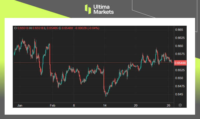 豪ドル対米ドルは、オーストラリア準備銀行(RBA)の今後の決定に影響を及ぼすと思われるインフレ率の不透明感から、直近3週間のピークを下回る0.656まで緩やかに下落した。オーストラリアのインフレ率は、12月の3.4%から、1月は3.5%にわずかに上昇すると予想されている。しかし、予想を上回る結果は、RBAが再び利上げに踏み切るのではないかという投資家の観測を再燃させる可能性がある。