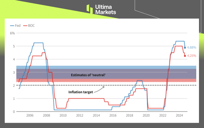 カナダ中銀は米連邦準備制度理事会(FRB)よりも早く、金利を経済を抑制も刺激もしない中立金利水準まで引き下げる可能性が高い。これはカナダの経済成長が弱く、インフレ率が中央銀行の目標である2%を下回るリスクが高まっているためだ。カナダの経済成長の鈍化は景気低迷を意味するため、中央銀行は中立金利の達成をFRBよりも急いでいる。