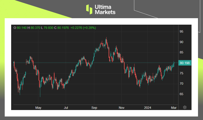 一方、WTI原油先物は1バレルあたり約80米ドルと、4ヵ月ぶりの高値まで急伸した。原油の価格回復の一因となったのは、OPECプラスの減産延長観測と中東の地政学的リスクである。3月に予定されているOPECプラスの会合が注目されており、産油国は原油市場の安定を維持するため、6月の閣僚級会合まで選好的な減産を継続すると予想されている。