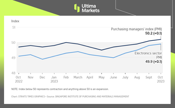 Simultaneously, the electronics sector, which accounts for approximately 40% of Singapore’s industrial output, saw its activity decline for the 15th consecutive month in October. However, the rate of decline moderated slightly, with a reading of 49.9 compared to 49.8 in September.