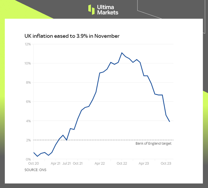 In a noteworthy turn of events, the UK’s inflation rate took a dip to 3.9% in November, as reported by the Office for National Statistics. This marks a substantial decrease from the 4.6% recorded in the previous month.